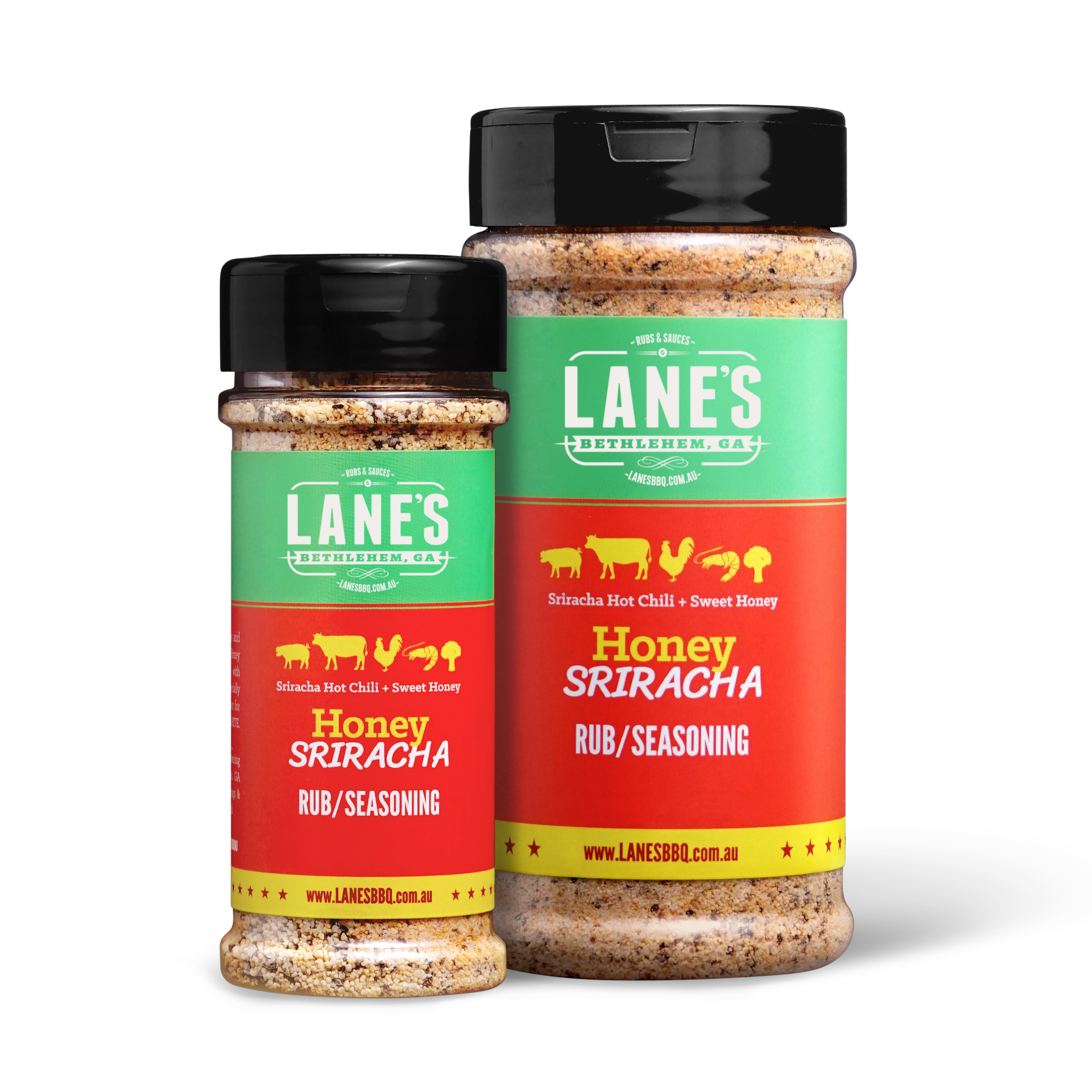 Our Honey Sriracha rub includes Granulated Honey, Sugar, Salt, Garlic, Pepper, Paprika, and Sriracha Powder (Vinegar Powder, Maltodextrin, Sugar, Salt, Paprika, Sprite, Citric Acid, Natural Flavour)